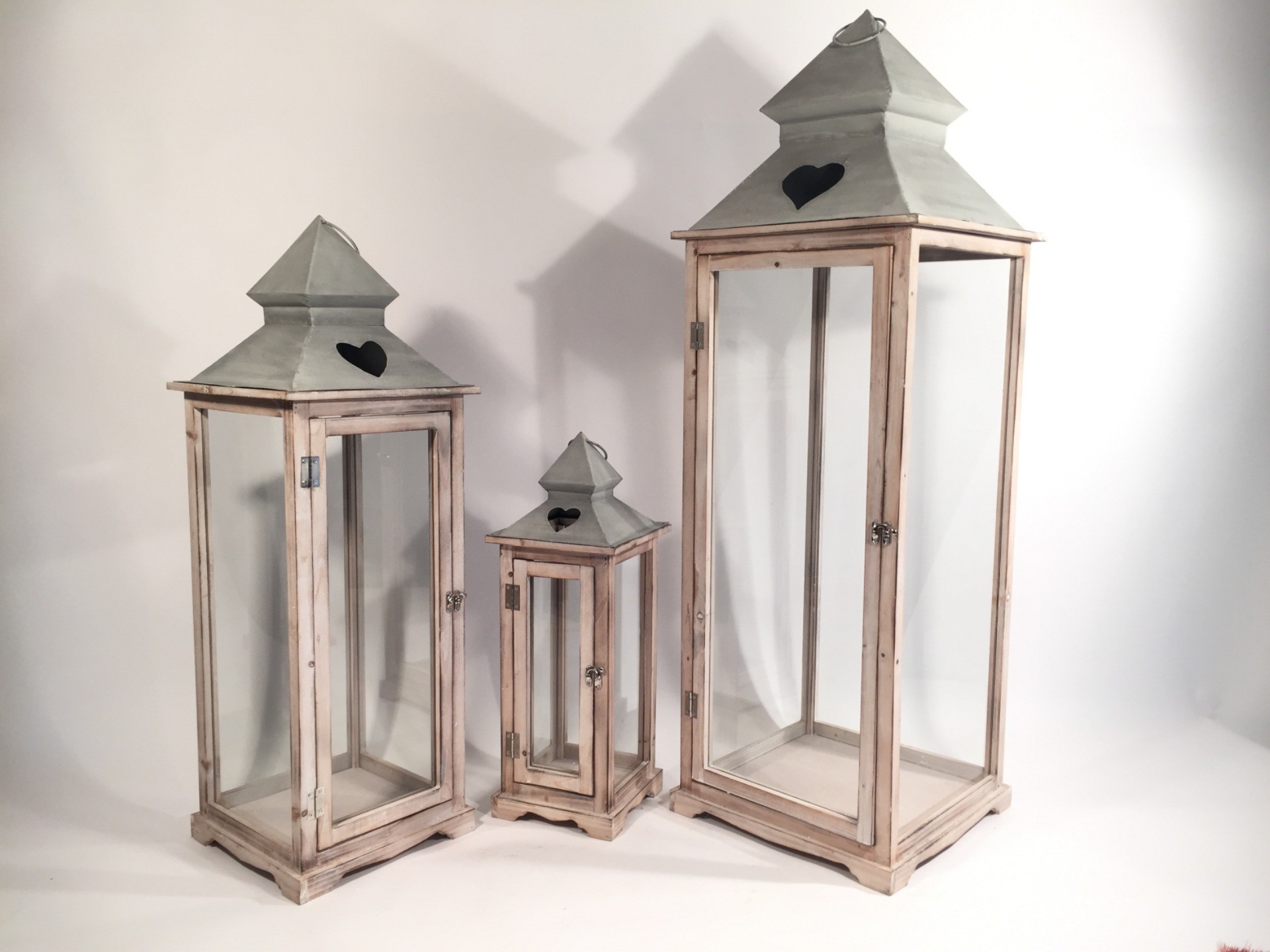 LATERN P19X19 H54; 35X35 H107,5 3SET. WOOD/METAL