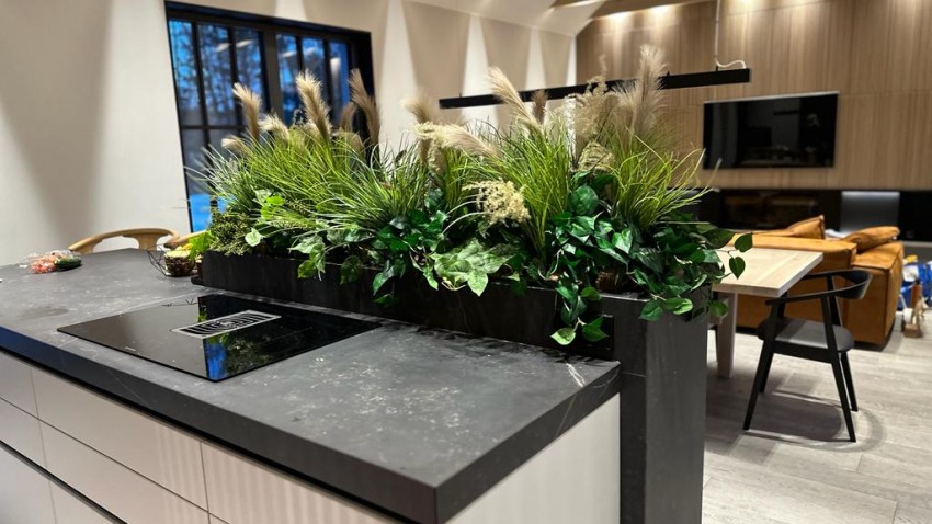 Virtuves nodalīšana ar mākslīgo zaļumu zonu